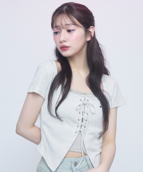 TITTY&CO.2025SS collection ♡レースアップがポイントのレイヤード風トップス♡ [detail] フロントのレースアップデザインが目を惹く、旬顔の夏トップスです。キャミソールを重ね着しているようなレイヤード風デザインで、こなれ感を演出してくれます♪伸縮性のある柔らかな生地感で、着心地も抜群な一枚◎ --------------------------裏地:なし透け感:ややあり伸縮性:あり生地の厚さ:薄手-------------------------- [styling] パール付きデニムと合わせて、ガーリーさをミックスした大人カジュアルに仕上がります♡マーメイドスカートと合わせれば、抜け感のあるフェミニンコーデに♪キャップとスニーカーでカジュアルダウンして、ストリートライクなスタイルにも◎ ※照明の関係により、実際よりも色味が違って見える場合がございます。 また、パソコン・スマートフォンなどの環境により、若干製品と画像のカラーが異なる場合もございます。 予めご了承くださいませ。 ※画像の商品はサンプルです。 実際の商品と仕様・加工・サイズが若干異なる場合がございます。 また、生産時期により、サイズやカラーに誤差が生じる場合がございます。 予めご了承くださいませ。 【商品のお気に入り登録】 完売カラーの再入荷や、セール通知などお得な情報を受け取ることができます。 ぜひご登録下さい♪ 【ブランドのお気に入り登録】 新作入荷や再入荷、セールやクーポンイベントなど注目のブランド情報を受け取ることができます。 ぜひご登録ください!!