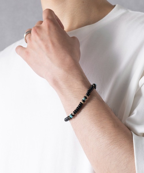 ■pointガラスビーズをベースに、ハウライトトルコと真鍮ビーズを組み合わせたブレスレッド。異素材のミックスによる表情豊かなデザインが、装いにさりげないアクセントを加えます。マンテル(留め具)仕様で着脱がしやすく、手元での操作も簡単。普段使いはもちろん、シンプルなコーディネートに取り入れることで、程よい個性を演出できます。■coordinate・白シャツやTシャツに合わせて、ナチュラルかつ爽やかな印象に・リネン素材のブラウスやワンピースと合わせれば、季節感ある軽やかなスタイルに・黒やネイビーのトップスと合わせて、ビーズの色味を引き立てた大人カジュアルに・ジャケットやカーディガンのインナーとして使えば、さりげない華やかさをプラス・同系色のブレスレットやイヤリングと揃えることで、統一感のあるアクセサリー使いが完成Hawk (ホーク)/Faucon(フォコン)東京に拠点を構える、レザーブランド。バッグや、ベルトなど革小物を中心に、上質なアイテムを高いコストパフォーマンスで展開する。 ジェンダーレスに使えるシンプルなデザインは、スタイルを選ばずに使える優れものです。■≪お気に入り登録≫でお得な情報盛りだくさん☆・“商品のお気に入り登録”で再入荷通知やラストの通知、セール通知も受け取ることができます◎・“ブランドのお気に入り登録”で新商品や再入荷など、お得な情報を受け取ることができます◎※ご注文いただいた予約商品のお届け時期の確認は、注文履歴ページより行えます。※他のキャンペーンにより、期間中に価格が変動する場合があります。※セールは予告なく終了させていただく場合もあります。