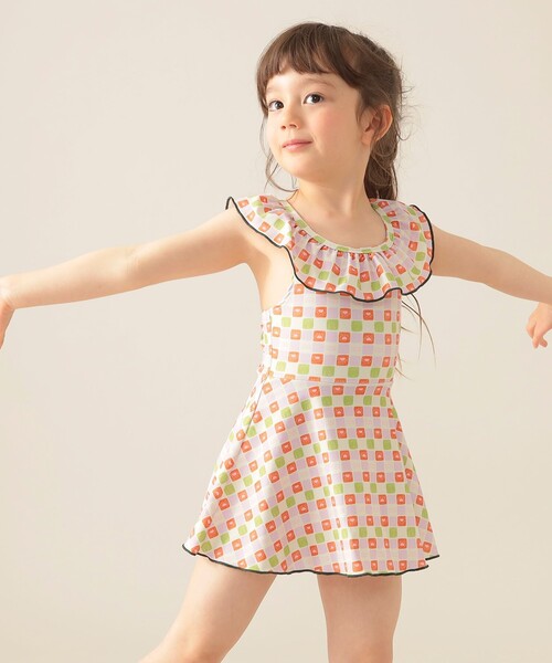 夏の思い出を可愛く彩る水着 フリル使いが愛らしいワンピース水着。 夏らしく元気で爽やかな柄が楽しい夏のレジャーにピッタリ♪ふんわりと広がるフレアスカートは、お尻周りを可愛くカバー。フィット感抜群のワンピース型は、思いっきり動いて遊んでも安心です。 夏の水辺の主役になれちゃうお洋服のようなデザインは、オシャレ好きな女の子心をくすぐります。 Model:H109(cm) Size:M(110-120) ※光の当たり具合やパソコンなどの閲覧環境によって実際の色味と異なって見える場合がございます。予めご了承ください。 ※商品の色味は商品単体で撮影した画像をご参照ください。 BEAMS mini / ビームス ミニ 〈BEAMS mini〉は、太陽が似合うような元気なカラーリングを大切に、ベーシックアイテムに適度なファッション性を加えた子ども服。子どもが服や生活を楽しんでいる様子を見て、大人もつられて遊びはじめてしまうような、エンターテイメントな楽しさが溢れています。価格とデザインのバランスでお客様の琴線に触れる「着て楽しい、見て楽しい子供服」を提供します。