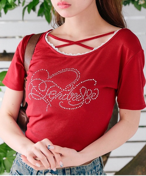 毎日着たくなる! 豊富なカラバリのプチプラTシャツ ■デザイン ・レースやきらきらロゴ、フロントのクロスデザインなど、かわいい要素たっぷりなガーリーTシャツ。 ・6色展開とカラーバリエーションも豊富で、友達とお揃いで着てもかわいいです。 ・コンパクトなサイズ感で着るだけで華奢見えが叶います。 ・伸縮性のあるリブ素材で着心地も抜群です。 ■カラー ・オフ/ピンク/サックス/ミント/レッド/ネイビーの6色展開 ■スタイリング ・ミニスカートを合わせてカジュアルガーリーコーデがおすすめ。 ・デニムやスウェットパンツなどカジュアルアイテムとの相性抜群です。 ----------------------------- 裏地:なし 光沢感:なし 透け感:なし 伸縮性:あり 手洗い:可能(30℃を限度とした非常に弱い洗濯) タンブラー乾燥:不可 アイロン:110℃まで ----------------------------- model:161cm お取り扱い上の注意 ※キャンペーンやフェアにより価格が変動する場合がございます。 ※サンプルで撮影している為、実際の商品と若干仕様が異なる場合がございます。 ※着用、お取り扱いの際は、商品についている品質表示とアテンションタグを必ずご確認下さい。 ※ご覧のモニター環境や撮影環境により実際の商品と多少色味が異なって見える場合がございます。ご理解の程よろしくお願いいたします。 ※引っかけ注意 ・粗い組織のものや、表面に凹凸があってルーズな組織のもの 表面に糸が浮き出ているものは、ちょっとした不注意から引っかけてしまいがちです。 取り扱いの際は取り扱い絵表示確認の上、十分注意してください。 ・着用時にベルトや、バックや周囲の壁など表面の粗いものとの摩擦や引っかかりに注意してください。 ・水洗いやクリーニングの際にも他の物ものとの引っかかりに注意して下さい。 ≪返品・交換について≫ ・着用後、洗濯後の返品・交換は致しかねます。 ・商品到着後、着用前に商品状態のご確認をお願い致します。