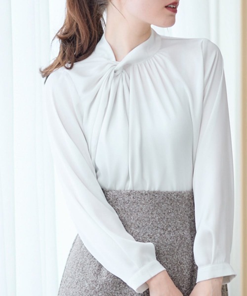 【華やかさを引き立てるタックデザイン】 累計10000枚!大人気素材に新作登場 艶やかなヴィンテージサテン素材が高級感をアシストするタックネックブラウス。 きちんと感がありながらもどこか華やかな佇まいで、 オフィスシーンからオケージョンまで幅広く活躍できる一枚です。 ●デザイン/シルエット 大人気ヴィンテージサテンから新型登場♪ ハイネックで上品な印象でありながらも、アシメタックの技巧を施したモードなブラウス。 ウエストインもしやすく小柄さんにもスッキリと着用いただけます。 しっかりと首に沿うデザインなので、ジャケットの襟デザインも選ばず、 クルーネックのカーディガンとも相性抜群◎ ●素材 ほんのりあるワッシャー加工と、肌に馴染む光沢感が特徴的な、ヴィンテージサテン素材。 目が細かく滑らかな見栄えです。 柔らかく、軽い着心地の日本製生地を使用しています。 上質な光沢感とさらりとした肌触りが魅力です。 高級感ある素材が、どんな場面でもエレガントな印象を与えてくれます。 ●コーディネート タイトスカート、パンツスタイルに、ウエストインしたオフィスコーデ。 ジャケットの中に着てスーツスタイルにも◎ デニムパンツでカジュアルコーデもおすすめです。 ●カラバリ ・ピュアで清潔感のあるオフホワイト ・清涼感のあるブルー ・知的で上品なネイビー ----------------------------------------------------- ■裏地:なし ■伸縮性:なし ■光沢感:あり ■透け感:なし(オフホワイトややあり) ■生地の厚さ:普通 ■ケア方法:手洗い可能 ■着用おすすめ月:1月~6月/10月~12月 ----------------------------------------------------- <12TwelveAgenda ‐トゥエルブアジェンダ‐> コーデの基本はシンプルで上質なアイテムに トレンドやその時々の気分で、自分らしくMIXコーデを楽しむ。 12ヶ月のリアルクローズと、日常にちょっとのスパイスを 与えるようなライフスタイルを提案します。 #オフィスカジュアル #きれいめカジュアル #お仕事コーデ #通勤服 #フェミニン #エレガンス ----------------------------------------------------- ■商品のお気に入り登録■ 完売カラーの再入荷通知や、ラスト1点の通知、セールの通知も受け取ることができます。 ぜひご登録ください♪ ■ ブランドのお気に入り登録■ 新商品や再入荷など、ブランドのお得な情報をいち早くお知らせ!ぜひご登録ください♪