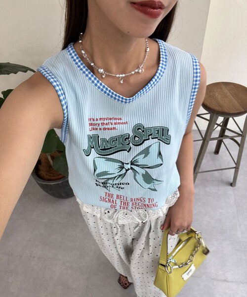 主役にもレイヤードにも使える遊び心たっぷりの一枚 ▼ポイント 存在感あるフロントプリントに、レオパード柄のパイピングがアクセント。 デザイン違いのアソート展開で、色ごとに違うムードを楽しめるタンクトップです。 リブ素材のボディはフィット感がありながらも動きやすく、1枚でもインナーでも活躍。 カジュアルにもガーリーにも着回しやすい、万能アイテムです。 ▼スタイリング ボトムスはデニムでカジュアルダウン、スカート合わせでちょっぴりガーリーにも◎ シアーシャツやジャケットを羽織って、レイヤードコーデを楽しむのもおすすめです。 --------------------------------------------------- 透け感:なし 伸縮性:あり 裏地:なし 光沢:なし --------------------------------------------------- 家庭洗濯:30℃限度/洗濯機[非常に弱い] タンブル乾燥:不可 アイロン:低温110℃まで クリーニング:ドライクリーニング不可、非常に弱い処理によるウェットクリーニング可 --------------------------------------------------- 【HELLO.SANFRANCISCO/ハローサンフランシスコ】 西海岸を代表するサンフランシスコ。年中暖かく、穏やかでフレンドリーな都市。少し懐かしさを感じる柄やアイテムを今の女の子に向けて提案。メンズライクな素材を女の子が着るシルエットに落とし込んだアイテムなどトレンドに敏感でいろんな気分に合わせて、服を選ぶ女の子のためのシリーズ。 --------------------------------------------------- ※着用、お取り扱いの際は、商品についている品質表示とアテンションタグを必ずご確認下さい。 ※画像の商品はサンプルです。実際の商品と仕様、加工、サイズが若干異なる場合がございます。 ※可能な限り実物に近いカラーにて掲載していますが、撮影環境やモニター環境などにより製品と画像のカラーがやや異なって見える場合もございます。予めご了承ください。 【お買いものをよりお楽しみいただく為に!!】 ▼商品のお気に入り登録(ハートマークをクリック) お気に入りアイテムの完売カラーの再入荷通知や、ラスト1点の通知、セールの通知も受け取ることができます。 ▼ブランドのお気に入り登録 新商品や再入荷、クーポン配布などのお得な情報を受け取ることができます。