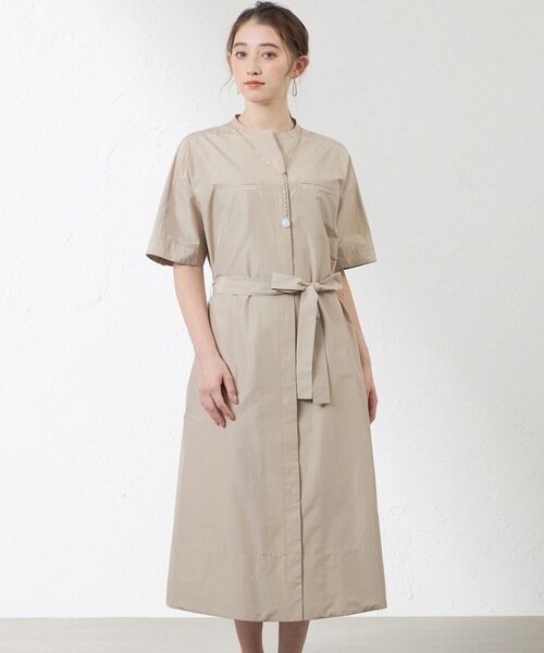 バンドカラーシャツワンピース【デザイン】胸のパッチポケットが印象的なシャツワンピースです。ゆったりとしたドルマンスリーブにカフスが付いており、カジュアルなアイテムながらきれい目に着ていただけます。ウエストベルト付きなのでウエストマークして着こなしても◎前を開けて羽織として着て頂けます。【素材】トリアセテートと綿の混紡素材です。タイプライターなので高密度な生地のハリ感がポイントです。また、光り過ぎない光沢感なので綿のタイプライターとは違う高級感が感じられます。手洗い可能でお手入れしていただきやすいです。