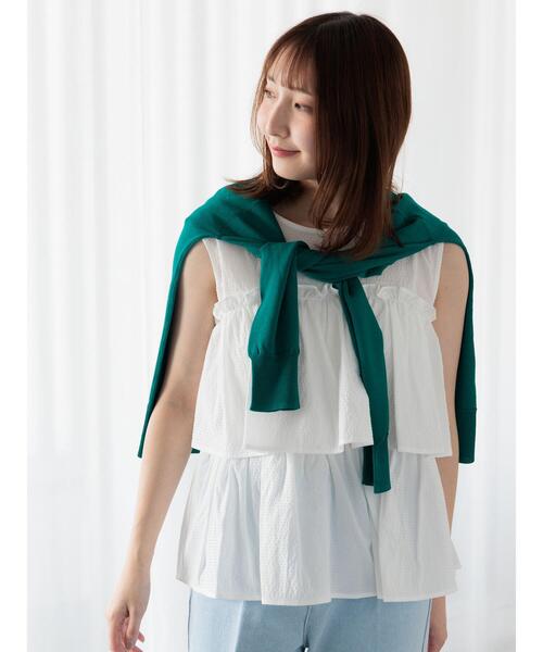 ふわりと広がるティアードフリルが華やかなノースリーブブラウス。凹凸のあるサッカー生地で肌離れも良く、さらっと爽やかに着用することができるのも嬉しいポイント◎コーディネートに取り入れるだけでも、甘さのある女性らしいスタイリングが楽しめるアイテムです。※商品画像は、撮影環境やお客様のご利用のPC・スマートフォンのモニター環境などにより実物と色味に差異がある場合がございます。
