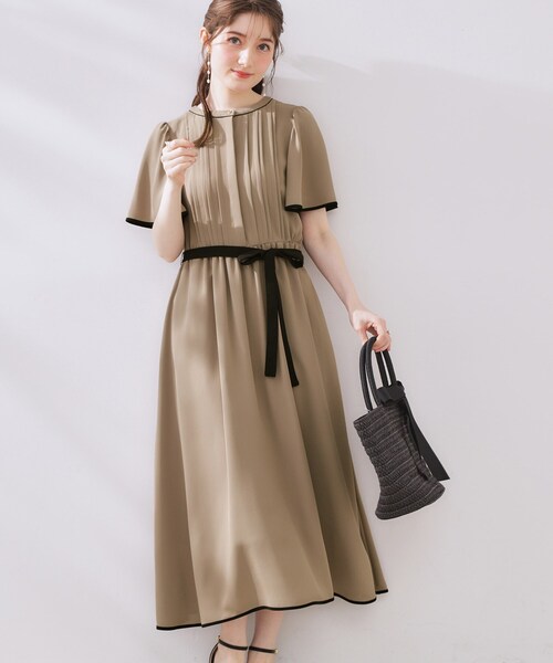 胸元にピンタックを施したキレイ見えのシャツワンピース ~POINT~ 衿元は詰まりすぎないようにし、台衿にすることですっきり感を出しています 衿元、裾・ウエストのリボンに配色を効かせたデザインです ウエストにはゴムが入っていて着心地も良いです 前上身頃は比翼開きになっておりキレイ見えします 【素材・機能】 麻調の合繊素材で涼し気な軽やかな素材です 【仕様】 ・ポケットなし ・スカート部分のみ裏地あり ※裏地のない部分はやや透け感があります ※照明の関係により、実際よりも色味が違って見える場合があります。また、パソコン・スマートフォンなどの環境により、若干製品と画像のカラーが異なる場合もございます。 【スタッフコメント】 ・saori(153 )楽ちんな着心地なのにオシャレな配色デザインできちんと感のでる優秀ワンピースです!通勤にはもちろん、おでかけにもおすすめ◎麻調でさらっとしており、暑い夏も活躍すること間違いなし! 【25SS NEW ARRIVAL】 【25SS NEW COLLECTION】 モデル情報:身長163cm B81 W56 H82 着用サイズ:38(M) 店舗へのお問い合わせ商品番号:508-52026 ●製品寸法: 36(S):着丈115cm B100cm 袖丈24cm 肩幅35cm W70cm H133cm 38(M):着丈117cm B103cm 袖丈25cm 肩幅36cm W73cm H136cm 40(L):着丈120cm B106cm 袖丈26cm 肩幅37cm W76cm H139cm 42(LL):着丈121cm B109cm 袖丈27cm 肩幅38cm W79cm H142cm 備考: