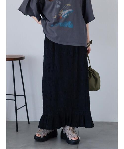 シャーリングが豊かな表情を演出するナロースカート。Iラインシルエットでスマートにスタイリングすることができ、控えめな裾フリルが上品な華やかさをプラスしてくれます。ウエストはゴムギャザー仕様になっていて着心地も快適◎合わせるトップスによって、カジュアルからキレイめにと幅広いスタイリングが楽しめるアイテムです。※商品画像は、撮影環境やお客様のご利用のPC・スマートフォンのモニター環境などにより実物と色味に差異がある場合がございます。【その他採寸】 F ウエスト:[ゴム仕様]64cm ★《お気に入り登録》でお得な情報をGET★① 商品ページ内のハートマークをクリック!② 以下通知が受け取れます!「再入荷」「ラスト1点」「特別セール」etc..\ブランド、ショップのお気に入りも是非!/