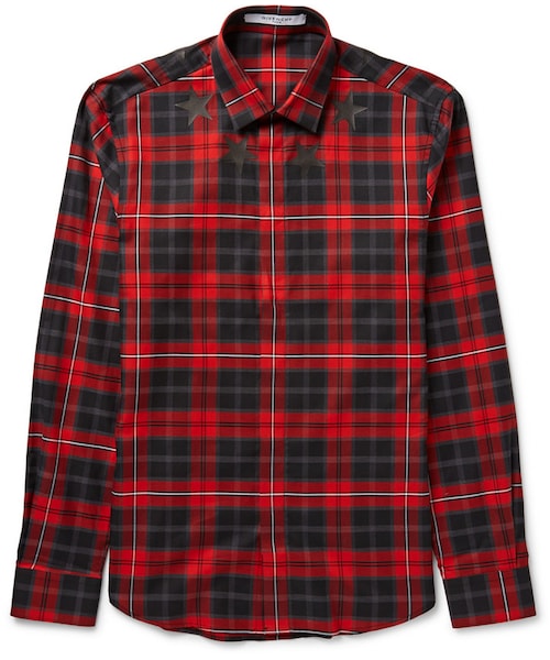 Givenchy 's reoccurring star motif stems from Mr Riccardo Tisci's fondness for Americana - in fact, he even collected flags for a time. In a red, black and white palette, this checked cotton-twill shirt is appliquéd with the design at the front yoke. It's infused with the label's signature edge while remaining easy to wear. Shown here with: Givenchy trousers and sneakers . Red, black and white cotton-twill Black rubberised star appliqués, buttoned cuffs Button fastenings 100% cotton Dry clean