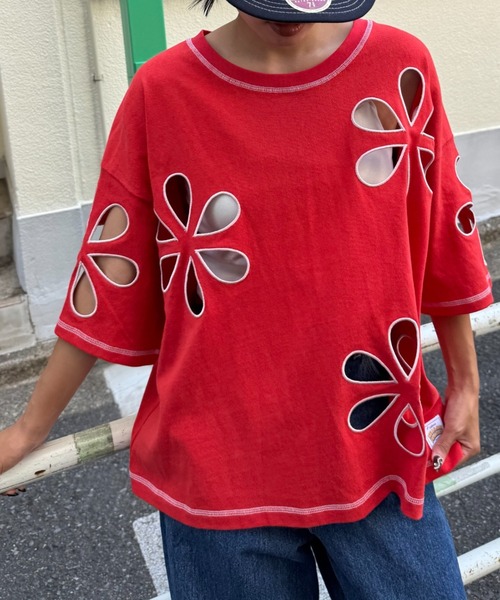 \人気アイテムを夏仕様にアップデート!/ ■デザイン 秋冬大好評いただいたアイテムのTシャツバージョン! デザイン性◎の大胆なフラワーカットはそのまま、ステッチをプラス◎ 人気のチャコール・ライトグレーに加え、新色にオレンジとブルーを追加! それぞれバイカラーのステッチが可愛いコーデの主役にピッタリな1枚◎ ルーズなサイジングで、シルエットもトレンド感のある印象。 インナー次第でちらっと肌見せする夏っぽコーデも◎ ■スタイリング シアートップスやカラー・柄のキャミでアクセントをつけた着こなしがオススメ! 定番のデニムでカジュアルに合わせるのはもちろん、スカートやショートパンツとのガーリーなコーデも可愛いです♪ ■お手入れ方法 洗濯:液温は30 ℃を限度とし、洗濯機で非常に弱い洗濯ができる アイロン:底面温度160 ℃を限度としてアイロン仕上げができる タンブル乾燥:タンブル乾燥禁止 ・・・・・・・・・・・・・・・・・・・・・・ 透け感:なし 裏地:なし 伸縮性:なし 光沢感:なし 生地の厚さ:普通 ・・・・・・・・・・・・・・・・・・・・・・ 【HELLO.SANFRANCISCO/ハローサンフランシスコ】 西海岸を代表するサンフランシスコ。年中暖かく、穏やかでフレンドリーな都市。 少し懐かしさを感じる柄やアイテムを今の女の子に向けて提案。 メンズライクな素材を女の子が着るシルエットに落とし込んだアイテムなどトレンドに敏感でいろんな気分に合わせて服を選ぶ女の子のためのシリーズ。 ▼気になる商品をお気に入り登録 ハートをクリックして《お気に入り登録》がオススメです! ※画像の商品はサンプルを使用しております。実際の商品と若干の仕様が変更になる場合がございますので、予めご了承の上ご注文くださいますようお願いいたします ※屋外の光や照明の当たり具合で、実際の商品の色味とカラー別画像の色味に若干の違いが発生する場合がございます。詳細画像と併せてご確認の上、ご注文いただきますようお願い致します。 ※独自のタイムセールなどの施策により、実店舗と価格差が発生する場合がございます。 ※実際の店舗在庫につきましては、各店舗に直接お問い合わせください。