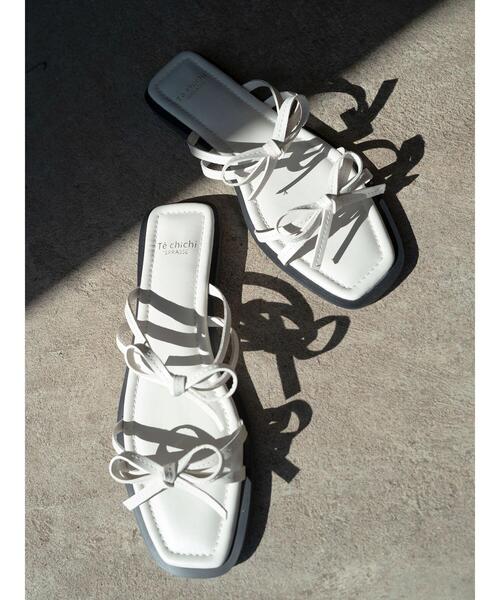 【2025 summer catalog掲載アイテム】ダブルリボンが愛らしいアクセントをプラスするフラットサンダル。足裏に優しくフィットするクッション性があり、歩きやすく履き心地も◎コーディネートに取り入れるだけでも、大人可愛いスタイリングに決まるアイテムです。※着用画像はサンプルを使用して撮影しております。製品と一部仕様が異なる場合がございます。予めご了承ください。※商品画像は、撮影環境やお客様のご利用のPC・スマートフォンのモニター環境などにより実物と色味に差異がある場合がございます。【サイズ】[M]23.5cm[L]24.5cm※サイズ表記について商品によって同サイズや同色等であっても各商品毎に誤差がある為、サイズ表記はあくまでも目安としてご参照ください。