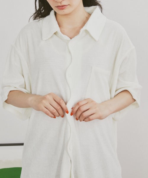 ウェーブのボタンラインがポイントのパイルシャツ■デザイン/素材ウェーブを描くボタンラインがサマームード漂うパイルシャツ。ゆったりとしたシルエットとドロップショルダーで、リラックス感のある着こなしに。タオルのように柔らかなパイル素材で、爽やかな肌触りの1着です。■スタイリング遊び心のあるデザインのシャツにはシンプルなボトムスを合わせて、シャツが主役のスタイリングに。シンプルながらも遊び心を感じるディティールで、程良いこなれ感を演出してくれます。カラーのインナーを仕込むとボタンラインのウェーブがより強調され、スタイリングのアクセントになってくれます。……………………透け感 : アイボリーのみややあり厚さ:普通伸縮性:ありお手入れ方法:手洗い推奨……………………※ご注意※・屋外の光や照明の当たり具合で、実際の商品の色味とカラー別画像の色味に若干の違いが発生する場合がございます。・詳細画像と併せてご確認の上、ご注文いただきますようお願い致します。【MERLOT】ジャンルレス、ジェンダーレスをテーマにヴィンテージライクからモダンなアイテムまで幅広く展開。 メンズとレディース、カジュアルとモード。あらゆる境界を取り払うミックススタイルを提案します。【商品のお気に入り登録】完売カラーの再入荷通知やラスト1点の通知、プライスダウンの通知を受け取ることが出来ます。【ブランドのお気に入り登録】新商品や再入荷など、嬉しい情報を受け取る事が出来ます。ぜひご登録ください◎※ご注文いただいた予約商品のお届け時期の確認は、注文履歴ページより行えます。