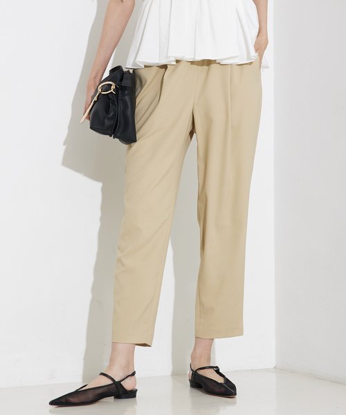 美シルエット叶う、楽ちんテーパード *Detail* 腿まわりはゆったり、裾にかけて細くなるテーパード型。 裏地はサテン素材で肌あたりも滑らか。 リラックス感がありながら、きちんと感もキープ。 *Coordinate* ブラウスを合わせてオフィススタイルに。 ローゲージニットやカットソーと合わせれば休日のお出かけにも◎。 足元はパンプスでもスニーカーでも好相性。 【商品のお気に入り登録】 完売カラーの再入荷通知や、ラスト1点の通知、プライスダウンしたセール通知も受け取ることができます。 【ブランドのお気に入り登録】 新作や再入荷等、いち早くブランドのお得な情報を受け取ることができます。
