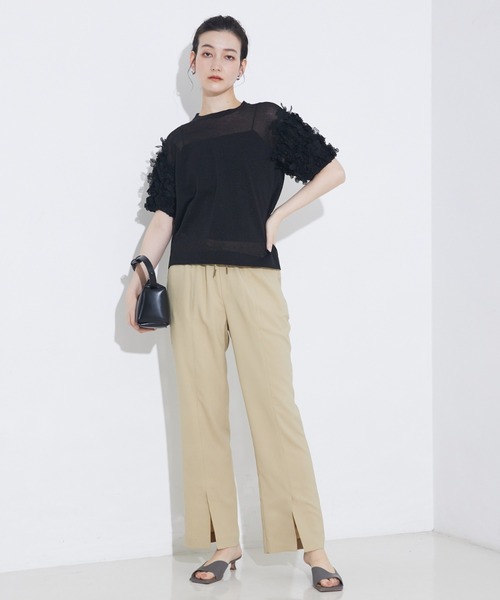 美脚見え叶う、落ち感ドロストパンツ *Detail* 腰まわりはすっきり、腿からまっすぐ落ちる美シルエット。 センターベンツ入りで脚長効果も抜群。 ウエストはドロスト仕様でラクに履けてきちんと見え。 *Coordinate* シャツを合わせればオフィスにもぴったり。 Tシャツやスニーカーでカジュアルダウンも◎。 シンプルトップスでパンツのシルエットを主役に。 クリーニング方法:手洗い可 【商品のお気に入り登録】 完売カラーの再入荷通知や、ラスト1点の通知、プライスダウンしたセール通知も受け取ることができます。 【ブランドのお気に入り登録】 新作や再入荷等、いち早くブランドのお得な情報を受け取ることができます。