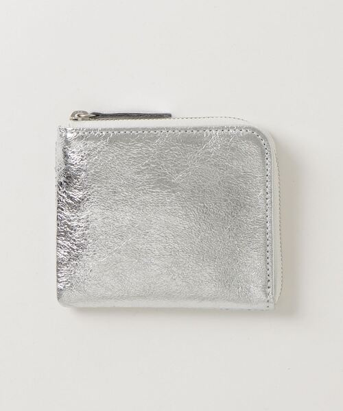 コシを残しながらもソフトな風合いに仕上げたレザー。 箔をのせた後にシワ加工を施し、表面に表情をだしています。 信頼感や誠実さを象徴するシルバーカラー。 信頼関係を築きやすくなる効果も期待できるともいわれています。 薄マチのコンパクト型。 お札は二つ折りで、コインは中央のループ型に収納。 背面にはスリットがあり、カードの収納可。 Dカン付き。