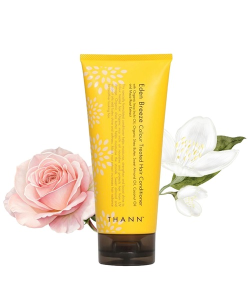 パーマやカラーリングを繰り返した髪を整える、植物由来トリートメント成分配合のダメージケアコンディショナー。 《カラー・パーマ・ダメージ補修・ハリツヤのある仕上がりをお求めの方へ。》 《エデンブリーズコレクション 花々が咲き誇る庭園を思わせるジャスミン、ダマスクローズの優雅でロマンチックな香り》 ※本商品は、ブランド品番EB0608の後継品になります。一部外装印字が新しくなっています。 植物油、植物由来トリートメント成分がカラーリングやパーマによるダメージを受けた髪にうるおいとハリ ・ツヤを与え、枝毛や切れ毛を防ぎます。 カラーしたての美しい髪色を長持ちさせるだけでなく、美しい髪の土台となる頭皮のコンディションを整えて、 ダメージを受けた髪を毛髪芯部まで集中ケアし、髪本来の美しさを引き出します。 <おすすめポイント> ・カラー・パーマのダメージが気になる方。 ・トリートメントのようなしっかりとしたうるおい感をデイリーケアで使いたい方に。 ・頭皮や髪のエイジングが気になってきた方に。 ・髪をほんのりと香らせ、香りも楽しみたい方に。 使用量目安:ショートヘア/さくらんぼ大、ミディアムヘア/マスカット大、ロングヘア/長さによって調節してください。 [使い方] 髪と地肌をお湯で予洗いした後、THANNのシャンプーまたはシャンプーEX/AWをよく泡立てて洗い、すすぎ流します。 適量を手に取り、まんべんなくなじませて5分ほど置いて浸透させます。 シャンプー後、軽くタオルで水気を取ってから髪全体になじませ、数分おいてから洗い流すと、 適量で効果的にコンディショニングすることができます。 [ご使用上の注意] 化粧品がお肌に合わないとき即ち次のような場合には、使用を中止してください。 そのまま化粧品類の使用を続けますと、症状を悪化させることがありますので、 皮膚科専門医等にご相談されることをおすすめします。 (1) 使用中、赤み、はれ、かゆみ、刺激、色抜け(白斑等)や黒ずみ等の異常があらわれた場合 (2) 使用したお肌に、直射日光があたって上記のような異常があらわれた場合