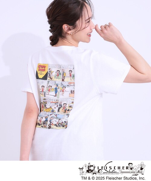 【デザイン】今年95周年を迎えるBETTY BOO(TM)のキューティーブロンド別注デザインTシャツ。程よくフィット感のあるサイズで、シャツやカーディガンのインナー使いとしても使えます。114カラー・・・アメリカンダイナー風のアレンジをしたベティちゃんのデザイン。219カラー・・・ウエイトレス風のベティちゃんデザイン。301カラー・・・映画の1コマを切り取ったような、白黒のフォトデザイン。401カラー・・・コミック調のバックプリントを施したデザイン。バリエーション豊かなデザインで選ぶ楽しさもあるアイテムです。【スタイリング】デニムパンツやフレアスカートなど、様々なアイテムと合わせやすいベーシックデザインのTシャツです。ボトムにタックインしやすい程よい丈感です。【素材】カジュアル感のあるTシャツ素材。ドライタッチで程よいハリ感があります。※照明の関係により、実際よりも色味が違って見える場合があります。また、パソコン・スマートフォンなどの環境により、若干製品と画像のカラーが異なる場合もございます。モデル情報:身長163cm B81 W59 H88 着用サイズ:02(M)店舗へのお問い合わせ商品番号:256-12347●製品寸法:01(S):着丈60cm B98cm 袖丈19cm 肩幅38cm02(M):着丈62cm B102cm 袖丈20cm 肩幅39cm03(L):着丈64cm B106cm 袖丈21cm 肩幅40cm04(LL):着丈66cm B110cm 袖丈22cm 肩幅41cm備考: