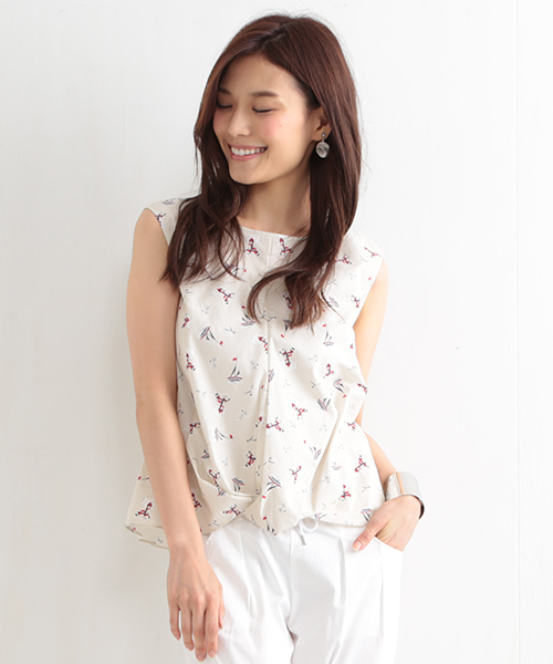 夏らしいマリン柄が可愛らしいノースリーブプルオーバー。フロント裾にほどこしたねじりデザインがアクセントに。手洗いも出来るので、夏には嬉しいアイテムです。ストローハットやカゴバッグなどをプラスするのが素敵。 同柄のスカートもご用意しているので、セットアップとしての着用もおすすめです。 ふんわりシルエットのリゾートスタイルをお楽しみください。 店舗へお問い合わせの際は下記品番をお伝えください。 品番:52-01-0198-012