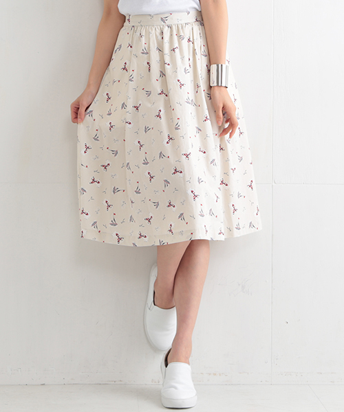 可愛らしいマリン柄に惹かれるスカート。ギャザーをほどこし、程良いふんわりシルエットに仕上げました。サンダルからスニーカーまで、幅広いスタイリングで着回しできるひと品。 同柄のトップスもご用意しているので、セットアップとして着用するのもお勧めのアイテムです。柄付きのデザインスカートで、夏のお出かけを楽しんでみてはいかがでしょう。 店舗へお問い合わせの際は下記品番をお伝えください。 品番:52-27-0319-012