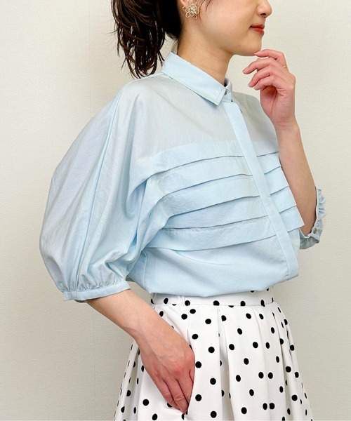 新鮮なデザインが魅力の横プリーツブラウス トロミ感とクリアな表面感が特徴のアセテートポリのブロード素材を使用。 さらさらとした肌触りに、ほんのりと透け感があり、涼し気に着て頂けます。 身頃から袖のタックへとつながるプリーツが新鮮で、特徴的な陰影と動きを生み出します。肘が隠れる長めの袖丈で、二の腕周りを気にする事なく着用が可能。 アウトスタイルはもちろん、ボトムスにインしても嵩張らないのも嬉しいポイントです。 【詳細情報】 厚み:■薄手 □ふつう □厚手 透け感: □なし ■あり 光沢感: ■なし □あり 伸縮性: ■なし □あり 裏地: ■なし □あり ポケット:■なし □あり 重量: 約260g ※撮影場所や明るさにより 実際の商品と色味が若干異なる場合がございます。 ☆商品のお気に入り♡登録を押せば ”再入荷通知”や”残りわずか通知” 値下げのお知らせが届きます! お気に入りのブランド登録していただければ新商品入荷のお知らせも届きますので 是非登録してみて下さい
