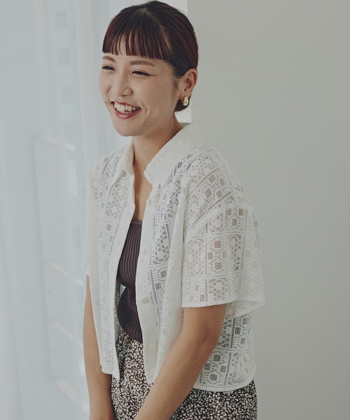 ボタンを閉めて1枚着としても、ボタンを開けて羽織りとしても活躍できる万能レースシャツです。短めの丈感なのでワイドシルエットともバランス良く着ていただけます。<素材>コットン混のさらっとした肌触りのレースを使用しています。<詳細>仕様・前ボタン裏地・なし透け感・あり / 光沢・なし / 伸縮性・なし生地の厚さ・普通●取り扱いについては、商品についている品質表示でご確認ください。●撮影はサンプル商品で行っている為、仕様とサイズが異なる場合がございます。●スタジオ及び屋外で撮影した着用画像は、光の当たり具合やご覧のモニターによって色味が違って見える場合があります。予めご了承ください。●生産時期により色・素材・サイズ感など多少異なる場合がございます。予めご了承ください。≪お買い物をよりお楽しみいただくために!≫・「商品のお気に入り登録」再入荷通知や、ラストの通知、セール通知も受け取ることができます。・「ブランドのお気に入り登録」新商品や再入荷をはじめ、タイムセールやクーポンなどいち早くブランドお得な情報を受け取ることができます。