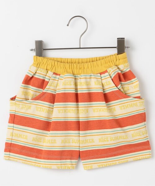 \ 夏が大好きな子どもたちに! /レトロな古着テイストのボーダーとロゴの総柄ハーフパンツ。「夏がだいすき!」というこどもたちの気持ちをデザインに。立体的なサイドポケットがシルエットのポイントになります。同素材のTシャツとセットアップで着たり、ワンピースとのリンクコーデもおすすめです◎Tシャツはこちら>>P307095 夏だいすきロゴボーダーTシャツワンピースはこちら>>P317055 夏だいすきロゴボーダーシャーリングスリーブワンピース= 綿100% =【取り扱い表示】40℃を上限に洗濯機で洗濯、デリケートアイテムモード、ネット使用、漂白剤を使用禁止、色物は同系の色と一緒に、洗濯後直ちに取出し、タンブル乾燥不可、日陰で吊り干し、低温でアイロン、商業ドライクリーニング不可※商品により多少の誤差が生じる事がございます。あらかじめご了承下さい。※ご使用のパソコンやブラウザの環境により、実際の色とは多少異なる場合がございます。※モデル着用写真についてはイメージの為、実際の商品とカラーや仕様が異なる場合がございますので、商品画像をご覧ください。【 p.premier -ピードットプルミエ- 】着心地のよい素材細やかなシルエットまでこだわったデザインコーディネートしやすいけれど存在感のある色使いシンプルで、それでいて今っぽい男の子も女の子も気分で選べる何気ない1日から、とっておきの日までp.premierはママの「こんなこども服がほしい」をとくべつな想いを込めて届けます