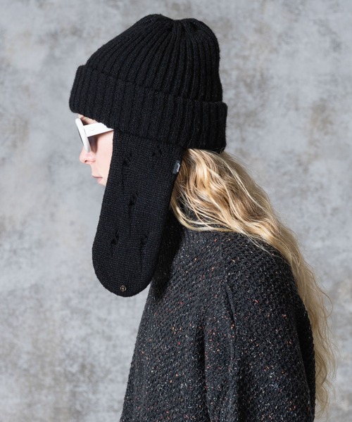グランジファッションのアイコンの一つであるフライトキャップをニットキャップに掛け合わせたFlight Knit Cap。長めに設定された耳当て部分は糸を飛ばしてダメージ感を演出。アクセサリー感覚で垂らしたスタイルに加え、スナップボタンで頭上に留めたアレンジも可能となっています。素材には弾力と滑らかさに特徴のある特殊アクリルであるドライノヴァ、ナイロンとウールを混紡した編み糸を使用。心地よい伸縮性と軽さのある質感により長時間でもストレスなくご着用いただけるこちらはMADE IN JAPANで仕上げています。