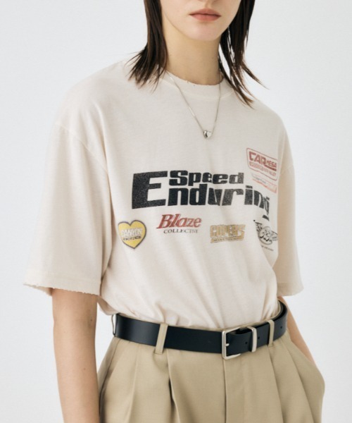 【COLLECTED MARKS TSJ / コレクテッドマークスTシャツ】■ポイントヴィンテージライクなグラフィックTシャツ。■ディテール色褪せたような加工感、グラインダー加工(ダメージ)、掠れたプリントなどそれぞれヴィンテージムードを大事にデザインされています。Tシャツが主役の季節に嬉しい前後にグラフィックの入ったポイントになってくれる1枚です。様々なレーシングチームのマークを集めたグラフィックデザインになっています。■スタイリングルーズなサイズ感と柔らかい素材を使用しているので、ボトムにイン、アウト、裾を結んだりボトムや気分に合わせてご着用いただけます。エアブラシ・グラインダー加工の為、1点1点かかり方に個体差があります。■生地透け感:無裏地:無伸縮性:無光沢感:無■商品のお気に入り登録お気に入りアイテムの再入荷・在庫1点などの通知を受け取ることができます。■ブランドのお気に入り登録新作アイテムの入荷や人気アイテムの再入荷、おすすめトピックスなど、いち早くブランドの情報を受け取ることができます。[注意事項]※画像の商品はサンプルです。実際の商品と仕様、加工が若干異なる場合があります。※画像の商品は光の照射や角度、お使いのモニター環境により、実物と色味が異なる場合がございます。※着用、お取り扱いの際は、アテンションタグをご確認ください。・こちらの商品はMOUSSY独自の採寸方法となっています。本サイトのサイズガイドと採寸方法が異なる場合がありますのでご了承ください。