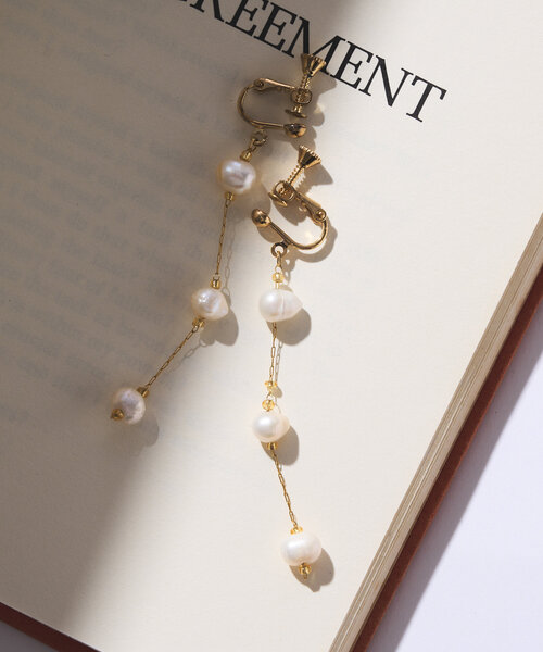【商品ポイント】・揺れる淡水パールがかわいいイヤリング。・シーンを問わず様々なスタイルに合わせられます。・パールは大きすぎず、やさしく上品な印象です。【素材】真鍮淡水パールチェーン:ステンレスビーズ:ガラス【骨格タイプ】骨格ストレート:全体的に立体型で筋肉質。ひざ下はすらっと細め。ボディラインにメリハリがある。骨格ウェーブ:上半身が薄く、華奢。緩やかな曲線のボディライン。下半身に重心があり女性らしい体型。骨格ナチュラル:筋肉や脂肪があまり感じられない体型。腰の位置が高く骨や関節が目立ちやすい。--------------------------------------------------------------------------------【注意点】※画像の商品は光の照射や角度、お使いのモニター環境により、実物と色味が異なる場合がございます。※入荷状況により、お届け予定が前後する場合があります。※工場の生産の都合上、納期が変更になる場合がございます。検品や輸送の関係で、発送日が前後しますのでご了承ください。 また、入荷状況により、お客様への発送が店頭販売より遅れる場合もございます。※追加生産商品は、一部の店舗、通販で販売中の場合がございます。予めご了承下さい。※サンプルでの撮影、計測をしております。商品の仕様が一部変更になる場合がございます。※撮影サンプル品はブランドタグがついておりません。製品にはタグがつきますので、製品の表に縫い糸が見える場合がございます。--------------------------------------------------------------------------------【お買い物をもっと便利に楽しく♪】『ハート』をクリックでお気に入り登録〇「商品のお気に入り登録」で・・・ ラスト1点や再入荷の通知が届きます。登録して頂いた商品だけが対象となる、あなただけのタイムセールが開催されることも!〇「ブランドのお気に入り登録」で・・・ 新商品や再入荷など、いち早くブランドのお得な情報を受け取ることができますので、ご登録をおすすめします!--------------------------------------------------------------------------------