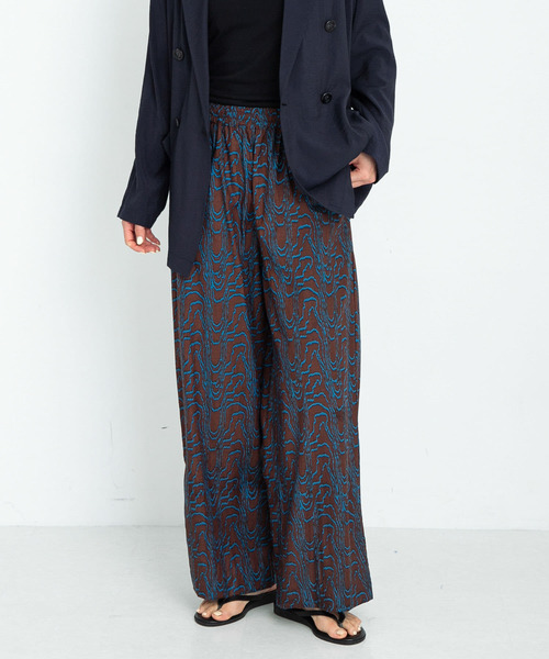 手書きの繊細なニュアンスプリント柄が目を惹くイージーパンツ コットンモダールの滑らかで肌触りの良い生地を使用し、ウエストはゴム使用なため履き心地も抜群。 シンプルなトップスに合わせるだけでこなれ感が出る大人のプリントパンツです。 POINT ・ご自宅で手洗い可能 ・ウエストゴムで快適な穿き心地 COORDINATE コンパクトなTシャツと合わせて大人カジュアルな雰囲気で穿くのがおすすめ。ブラウスとも好相性◎ 【2025 Spring/Summer】【25SS】 ※この商品はインドで素材調達、縫製を行っています。素材の特性上、多少の色差、織ムラ、フシなどがあります。インド製品独特の風合いをお楽しみください。 ※この商品は、縫い目などに過度な力が加わることで滑脱(縫い目が滑って開いたり、縫いしろが抜ける)する場合がありますのでご着用の際はご注意ください。 ※この商品は素材の特性上、水や湿気により、シミになりやすい(ウォータースポット)性質があります。また着用を繰り返すと毛羽立ったりすることがありますのでご注意ください。 ※商品画像は、光の当たり具合やパソコンなどの閲覧環境により、実際の色味と異なって見える場合がございます。予めご了承ください。 ※商品の色味の目安は、商品単体の画像をご参照ください。 ▼お気に入り登録のおすすめ▼ お気に入り登録商品は、マイページにて現在の価格情報や在庫状況の確認が可能です。 お買い物リストの管理に是非ご利用下さい。 素材感 透け感 : なし 伸縮性 : なし 裏地 : なし 光沢 : なし ポケット : あり