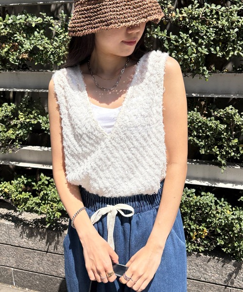 ●design 透け感が可愛いチュニック丈のフリンジベスト。 深めのVネックとクルーネックとの2通りで着ることが出来ます。 広めのアームホールで華奢見え効果◎ ●fabric 透け感あるカットジャガード素材。 柔らかく着心地抜群です。 汗ばむ季節にも快適に着用できる、涼し気な生地。 ●style キャミソールやTシャツを合わせたレイヤードコーデがおすすめ。 前後で違った表情を楽しめる2wayデザインで 様々なスタイリングをお楽しみいただけます。 シンプルなデニムと合わせるだけでコーデが華やかにランクアップ。 ●color アイボリー、ブラック ・・・・・・・・・・・・ 厚み:薄い 伸縮性:なし 肌触り:普通 裏地:なし 透け感:あり ・・・・・・・・・・・・ ●ISOOK / アイスー 人気インフルエンサーの個性が詰まったセレクトアイテムや ブランドセレクトのトレンドライクなカジュアルアイテムを発信。 シンプルな日常のスタイリングに溶け込む、様々な個性あふれるブランドです。 ▼▼お気に入りの登録でお得な情報をゲット!▼▼ 商品のお気に入り登録で、再入荷の通知や、ラスト1点、セールのお得な通知を受け取ることができます。 ブランドのお気に入り登録で、新商品や再入荷など、ISOOKのお得な通知を受け取ることができます。