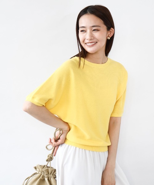 軽く清涼感のあるコットン混ニット ■デザイン シンプルなガーター編みのニットプルオーバー。適度なゆとりと丈バランスの五分袖が長く愛用いただけるシンプルなデザインです。 ■素材 表面の凹凸感が肌離れの良いガーター編みニット。軽く清涼感のあるソフトなタッチのコットン混素材です。 ■コーディネート パンツ、スカートとボトムを選ばない着丈は着回しの良さ◎。裾のリブが腰周りにフィットするので、インせずともすっきり見えのバランスで着こなせます。 -------------------- 着用シーズン 春:◎ 夏:◎ 秋:× 冬:× -------------------- 洗濯表示:手洗い可 透け感:あり 裏地:なし 伸縮性:あり 生地の厚さ:やや薄手 -------------------- ■スタッフ着用コメント <スタッフ身長:157cm/着用サイズM(38)/普段の着用サイズS(36)~M(38)> ゆったりしすぎすコンパクトすぎない、絶妙なシルエットがおしゃれ見えするナチュラルサマーニットです。表面感はドライタッチなさらりとした手触りで、肌離れの良いコットン混素材。 サイズ感はほどよくゆとりがあり、リブ部分にも伸縮性があるので窮屈感なく着られました。ころんと可愛いシルエットのお袖デザインが素敵な、オンオフ兼用・ロングシーズンでおすすめの一枚です。 <スタッフ身長:164cm/着用サイズM(38)/普段の着用サイズS(36)~M(38)> 軽やかなコットン混素材で清涼感のあるニット。 シンプルなデザインなので長く愛用できる着回しアイテムです。 肘上の袖丈で二の腕がカバー出来るのが嬉しいポイント。 首元の開きが苦手な方にもおすすめ。 <スタッフ身長:157cm/着用サイズM(38)/普段の着用サイズM(38)> 清涼感があるドルマンスリーブのサマーニットです。ネックは一枚着しやすい開きに仕上げました。肌に張り付きにくいシャリ感のある素材は着心地良く愛用出来るニットです。 裾はウエストインをしなくても腰で自然に留まります。手洗い洗濯可能なのも嬉しいですね。 -------------------- ※自然光・照明の関係、パソコン・スマートフォンなどの環境により、実際と色味が違って見える場合がございます。予めご了承ください。商品の色味は、詳細画像をご参照ください。 ※サンプルでの撮影となるため、実際にお届けする商品と仕様やサイズが異なる場合がございます。