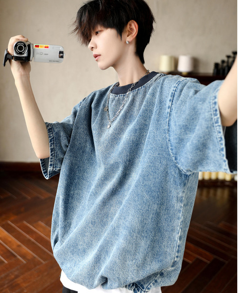 【neos】ルーズシルエット ビンテージライク ドローコード ハーフスリーブ デニム Tシャツ ゙存在感あるルーズシルエットとストリート感のあるデニム素材でビンテージライクに着こなせるデザインTシャツ!゛ ■トレンド感のあるルーズシルエットでイマドキな「ルーズシルエット ビンテージライク ドローコード ハーフスリーブ デニム Tシャツ」 取り入れるだけで旬な韓国、韓流ファッション的な着こなしが完成する1着。 ストリート感のある目を惹くビッグシルエットデザインで旬な着こなしと存在感を発揮するデニムTシャツ。 絶妙なルーズシルエットなのでスタイリッシュに魅せられるのが魅力!! サラッと着こなすだけでイマドキ感が加速するデザインなのでデイリーコーデにフル稼働間違い無しです。 ■ビンテージ感あるデニム素材でスタイリッシュな雰囲気に!! 古着のような色落ちが魅力のケミカルウォッシュ加工が施されたデニム素材でこなれ感が漂う1着。 デニムはもちろん、カーゴ、スラックスなどボトムを選ばない安定感のある合わせやすい1着なのでスタイリングの幅を格段に広げてくれます。 ■メンズ、レディースどちらもイケるユニセックスデザインでペアルックやリンクコーデにも! 夏コーデを盛り上げてくれるポップなデザインが◎男性が着ればストリート感のあるこなれ感のある着こなしに、女性が着ればスマートさが溢れるボーイズライクコーデに! ビッグシルエットがキーワードの昨今のスタイリング作りに重宝するストリート感あるデザインで着こなしの幅が広がる1着。 ざっくり着こなせるルーズなシルエットでメンズ、レディースどちらでもジェンダーレスに使えるからイベントやリンクコーデなどにもオススメです。 ※モデル:167cm 56kg 着用:Lサイズ 時代のニーズにあったトレンドアイテムをいち早くセレクトし、”個性的”でどこか”中毒性”のある新たなファッションスタイルを独自の世界観で提案していくセレクトブランド。 「neos/ネオス」 【お買い物をお楽しみいただく為に!】 ▼商品のお気に入り登録 完売カラーの再入荷通知やラスト1点の通知、セールの通知も受け取ることができます。 ▼ブランドのお気に入り登録 新商品や再入荷など、いち早くブランドのお得な情報を受け取ることができます。