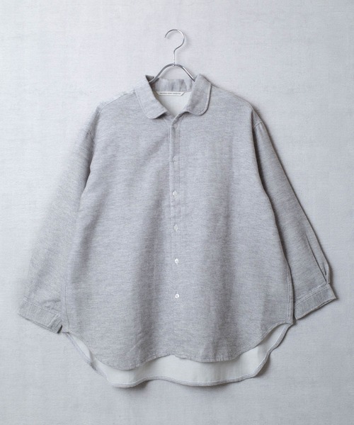 GRANDMA MAMA DAUGHTER(グランマ ママ ドーター)は、加藤博(Kato Hiroshi)が手掛けるデニムブランドKATO'(カトー)のレディースブランド。 【デザイン】 KATO'が手がけるレディースライン【GRANDMA MAMA DAUGHTER】より、柔らかな風合いが魅力の“ワタモウフ ラウンドカラーシャツ”が登場。 ふんわりとしたコットン素材に、ほどよい厚みと起毛感をプラスした生地を採用。 軽いスウェットのような着心地ながら、上品な佇まいを感じさせる仕上がりです。 丸みのあるラウンドカラーと、ゆとりを持たせたドロップショルダーのシルエットが特徴。 裾はラウンドカットで、アウトでもインでもバランス良く着こなせます。 一枚着はもちろん、ニットやジャケットのインナーにも好相性。 季節を問わずデイリーに活躍する万能アイテムです。 【KATO'/カトー】 京都発信の国内ブランド「カトーブランド」。コンセプトは「TOOL PROJECT」。「人は服を完成させるための道具=人が着て初めて服は完成される」。KATOの服は着る人により表情を変え、着込むほどにその持ち主と同化する。長年世界のデニム業界で活躍してきたデザイナーKATO氏が、生地からこだわり、独創的なデザインで作り上げるプロダクトはヨーロッパでも高く評価され、現在ロンドン、ミラノ、ローマのセレクトショップでも扱われています。