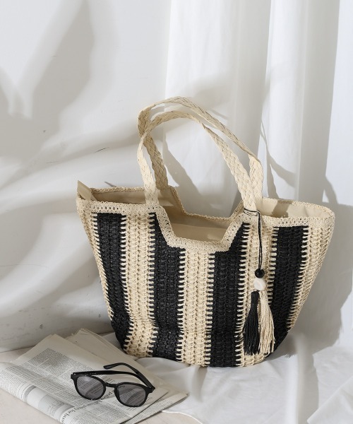 ■POINT太めのストライプ柄が遊び心をくすぐるトートバッグが新登場!がばっと開く大容量なので、レジャーやフェス、ビーチバッグにも◎。高級感のある裏地と天ファスナー付きで安全性も備えています。夏のお出掛けにぜひ持っておきたい1つです。■FABRIC話題のペーパー素材なので軽量かつ優しい質感が特徴です。発色も良く、夏のアクセントにぴったりです。…………………透け感:なし裏地:あり…………………★商品のお気に入り登録 登録すると、完売しても再入荷時に通知を受け取ることができます。 ほかにもお得な特典があるかもしれません♪ ★ブランドのお気に入り登録 新商品や再入荷などの情報を受け取ることができますので、是非ご登録ください♪