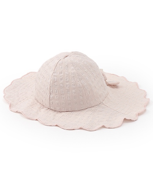 スカラップデザインのツバが魅力的なサンハットです。 バックは立体感のある飾りリボンで可愛さをプラス。 落下防止に役立つあご紐が備わっています。 UVカット機能つきなので、暑い日も快適です。 アクティビティから普段使いまで、幅広く活躍します。 内側にお名前を記入できるタグつき。