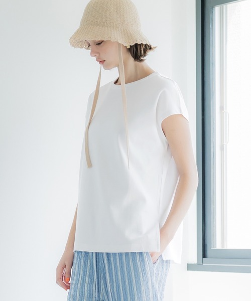 すっきりとしたシルエットのフレンチスリーブTシャツ。 肩まわりを自然にカバーしつつ、抜け感のあるデザイン。 程よいハリ感のある素材できれいめにもカジュアルにも◎ 1枚着でもインナーとしても活躍する万能トップス。 伸縮性:あり 透け感:ホワイトあり 裏地:なし ポケット:なし 生地感:さらりとした伸縮性のある生地 注意点:素材の特性上、ブラックは色落ちしやすいのでご注意下さい。 お洗濯方法によっては縮みや色あせの可能性あり。乾燥機等のご使用はお控え下さい。 ▼生地や素材の性質により2cm前後サイズ誤差が出る場合がございます。 ▼モデル着用写真は撮影環境により、多少実際のカラーと異なる場合がございます。 ▼色落ちの恐れがありますので、他のものと分けて洗って下さい。 ▼当商品は機械による生産の過程上、『生地を織る際の糸の継ぎ目』や多少の『ほつれ』、繊維の『混紡』、形やサイズに多少の『誤差』が生じる場合がございます。 トップス Tシャツ カットソー フレンチスリーブ スムース 裾スリット クルーネック 伸縮性 コットン カジュアル 25ss コカ COCA coca COCA coca