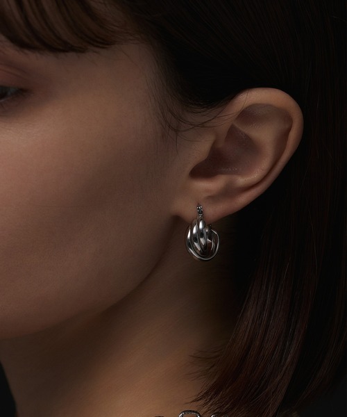 三本のラインがクロスしたようなデザインのピアス。互いにねじり合う三本のフープはシンプルながらも、存在感があります。トリプルウェブフープピアスより小さめのサイズ感は、日常に溶け込みデイリーにもフォーマルにも活躍します。 ※こちらは両耳セットになります。 - coordinate with - 様々なシーンで活躍間違いなしのピアスは、カジュアルなコーディネートの日はボリューム感のあるネックレスを合わせて、少しマニッシュなイメージで着用がおすすめです。きれいめなシーンでは、細めのネックレスやパールアイテムを合わせるとぐっと上品な印象になります。 <サージカルステンレスの特徴> ・医療器具にも使用されるステンレス ・汗、水に強く、サビにくい ・金属アレルギー対応 サージカルステンレスは、サージカル=医療用の、 ステンレススティール=錆びない鉄、 という意味で作られた造語で、身体に影響の少ない安全な合金です。 そのため、金属アレルギーの方にも安心で、腐食や熱などにも強いため、長く着用していても老朽化しにくいというメリットがあります。 ※サージカルステンレスはアレルギーが起きにくい素材ではありますが、アレルギーの原因はさまざまです。すべての方にアレルギーが起きないことをお約束するものではありません。 またアレルギー反応が出た場合は使用をお控え頂くようにお願いいたします。 ※錆に強く、変色しづらい特徴がございますが、経年の劣化は考えられますため、永久に製品状態を保証するものではございません。使用状況・方法などによって劣化の速度は異なります。 予めご了承ください。 <サイズ> 高さ:約1.5㎝ 幅(最も太い部分):約0.7cm 重さ:約2.5g(片耳分 <CENEとは> 金属アレルギーに悩む女性向けブランド- 「金属アレルギーでも輝きは捨てない」 CENEは、アクセサリーつけると“痒くなる”という金属アレルギーの方や”お風呂も温泉も付けっぱなし”で入りたい!!という女子のためのアクセサリーブランドです。