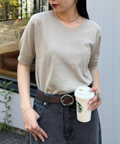程よいきちんと感。夏でも着れるサラッとニットトップス◎■デザイン夏でもさらっと!着心地の良さにこだわったニットトップスTシャツより綺麗見えするので、ラフなシーンからオフィスカジュアルまで着回しできます◎首元や袖は“高見え+よれにくい”リブ仕様そのままでもタックインしても着やすい丈感で実用的なデザインもポイントベーシックなホワイトやブラックからアクセントになるピンクやレッドまで8色展開!豊富なカラーバリエーションなので2色買いもおすすめです♪■スタイリングデニムやイージーパンツでカジュアル。スラックスやフレアスカートと合わせると一気に綺麗めコーデに♪涼しくなってきたらジャケットのインナーなどにもきまわしできます◎■お手入れ方法洗濯:液温は40 ℃を限度とし、手洗いができるアイロン:不可タンブル乾燥:不可・・・・・・・・・・・・・・・・・・・・・・透け感:なし裏地:なし伸縮性:あり光沢感:なし生地の厚さ:普通・・・・・・・・・・・・・・・・・・・・・・▼気になる商品をお気に入り登録♡をクリックして《お気に入り登録》がオススメです!入荷情報や、クーポン情報が通知されるようになります。※画像の商品はサンプルを使用しております。実際の商品と若干の仕様が変更になる場合がございますので、予めご了承の上ご注文くださいますようお願いいたします※屋外の光や照明の当たり具合で、実際の商品の色味とカラー別画像の色味に若干の違いが発生する場合がございます。詳細画像と併せてご確認の上、ご注文いただきますようお願い致します。※独自のタイムセールなどの施策により、実店舗と価格差が発生する場合がございます。※実際の店舗在庫につきましては、各店舗に直接お問い合わせください。