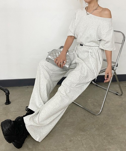 デコルテラインを綺麗に魅せてくれるレディライクな春服から夏服コーデのポイントになるオフショルダートップスとスウェットパンツのセットアップ。 トップスはオフショルダーで、 ヘルシーな肌見せが出来るアイテム。 ワンショルダー・Uネックトップスとしても 着用出来るので、変化が楽しめます◎ ゆったりとした身幅と、 ルーズなシルエットで 抜け感をプラス。 パンツはウエスト部分のレースタグがポイント◎ ウエストゴム仕様と ルーズなワイドシルエットで、 リラックスした穿き心地。 脚の形を拾わない太めのシルエットで、 気になる下半身を 自然とカバーしてくれるのも 嬉しいポイントです◎ 上下セットでの着用はもちろん シングルユースも出来るので、 スタイリングの幅が広がります◎ 【サイズ】 【トップス】着丈45cm、身幅52cm、肩幅48cm、袖丈19cm、袖幅19cm、すそ周り72cm 【パンツ】着丈100cm、ウエスト62cm(ゴム仕様)、ヒップ112cm、もも周り72cm、股上33cm、股下70cm、すそ周り64cm 【伸縮性】あり 【透け感】なし 【裏 地】なし ※画像の色味はお使いのパソコンやスマートフォン等のモニター環境により、 実際の色目とは若干ことなる場合がございます。 ※輸送時による、多少の汚れ・シワがある場合がございます。 ※平置きでの実寸のため、若干の誤差が生じる場合がございます。 【お買い物をよりお楽しみいただく為に!】 ▼商品のお気に入り登録 ハートをクリック! 完売カラーの再入荷や、ラスト1点の通知、セールの際の通知を 受け取る事が出来ます。 ▼ブランドのお気に入り登録 新商品や再入荷など、いち早くブランドのお得な情報を受け取る事が出来ます!