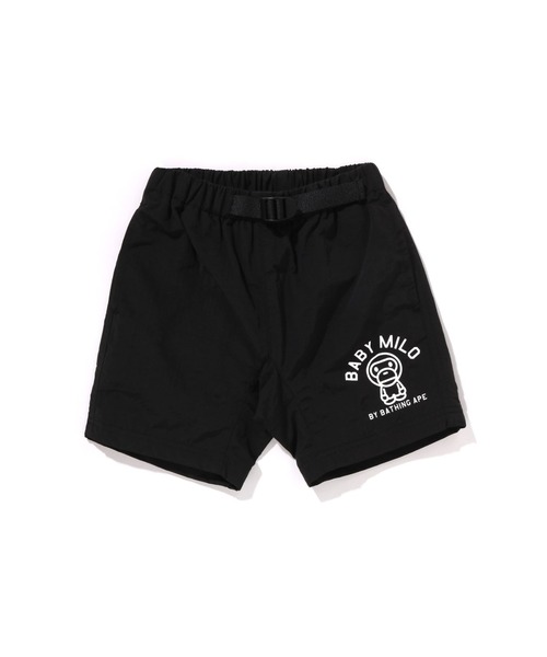イージーウエスト仕様のベルト付きのショートパンツ。左裾部分にBABY MILO モチーフをラバープリントしたデザイン。レギュラーフィット シルエット。
