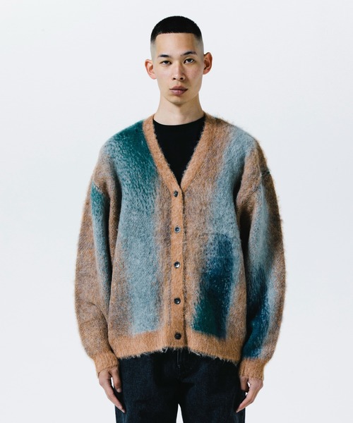 オリジナルの柄を作成し、ニットに落とし込んだカーディガンです。厚手なのでアウターの様に着用できます。