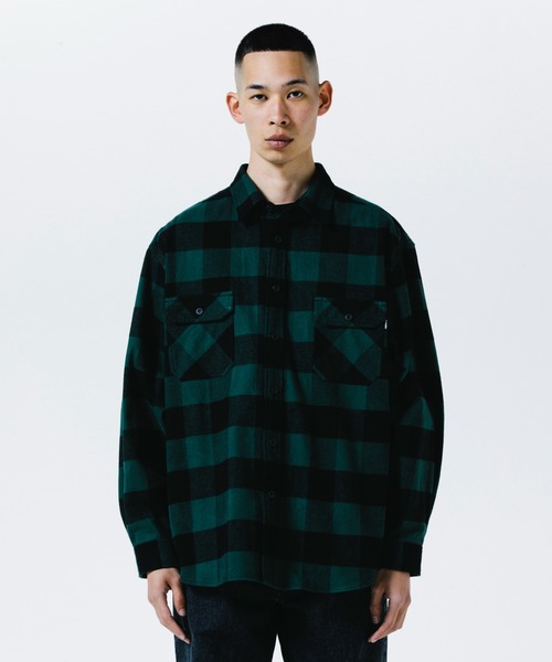 厚手のコットン100%のネルチェック生地を使用したワイルドシルエットのレギュラーカラーシャツです。