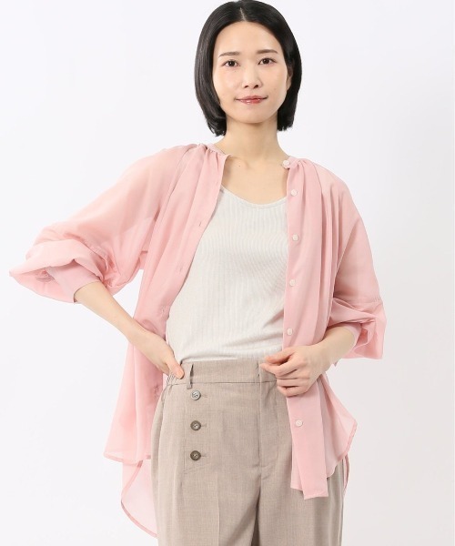 エムエフエディトリアルレディース/m.f.editorial:Womenラグランギャザー シアー長袖シャツ■素材特徴暑い時期も涼しく着ていただける、透け感のあるシアー素材を使用しています。空気のようなふんわり軽い着心地が特徴です。■機能【マシンウォッシャブル】洗濯機で洗えます。(要ネット・標準水流)【吸汗速乾】汗を素早く吸収して乾かし、サラッとした着心地をキープ。■デザイン前開きタイプのロングシャツです。抜け感のあるバンドカラー、袖口のカフス仕様、肩幅を気にせず着用できるラグランスリーブがポイント。ボタンを留めて着たり、シャツアウターとして羽織ったり、その日の気分やコーディネートに合わせて楽しめます。■シルエット身体のラインを拾わないゆるやかなシルエットです。長めの着丈なので、気になる背中やウエスト、ヒップラインを隠しつつお洒落に体型カバーが可能です。■コーディネート綺麗目なタックパンツや細身のテーパードパンツに合わせるとバランス良くまとまります。ネックレスなどアクセサリーを首元に輝かせるのもおすすめ。普段使いからオフィスカジュアルまでオンオフ兼用で大活躍してくれます。フィット感:ややゆったりシーズン:春夏展開カラー:黒(無地)・グレー(無地)・ピンク(無地)*アテンションタグ・洗濯ネームを御確認の上、着用又は取り扱い下さい。*光の当たる場所や高温多湿になる場所での保管は避けて下さい。*使用の有無に関わらず、経年劣化は進行いたしますのでご了承下さい。*生地の裁断・縫製方法により、写真と同様の柄が出ない場合がございます。*閲覧デバイス・環境により質感・色味に誤差が生じる場合がございます。* ZOZOTOWN お買い物ガイド・商品のお気に入り登録ハートマークをクリックしましょう!完売カラーの再入荷通知や、ラスト1点の通知、セールの通知をお知らせします。・ブランドのお気に入り登録新商品や再入荷など、いち早くお得な情報を受け取ることができます。・最短で翌日お届け商品をカートに入れた後、注文内容の確認ページで「即日配送」を選択していただければ、最短でご注文した翌日にお届け致します。(ZOZOTOWNお買いものガイドをご参照ください)