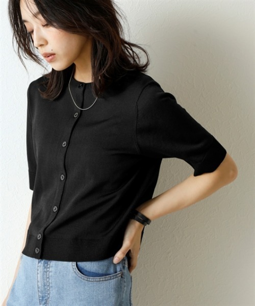 暑い季節に嬉しい!ひんやりが続く「持続冷感」の新素材ニットシリーズです。 ■デザイン 無駄を削ぎ落とした、シンプルで美しいクルーネックデザイン。 どんなスタイルにも合わせやすい、着回し力抜群のベーシックアイテムです。 ロングシーズン使えて、二の腕をさりげなく隠せる5分袖。 程よいフィット感と、ワンピの羽織やハイウエストボトムスに使えるコンパクト丈。 ノースリーブやキャミソールなどのコーディネートに重宝する1着です。 冷房などの冷え対策にもおすすめ。 オフィスにもカジュアルにも、シーンを選ばず活躍します。 ■素材 さらっとシャリ感のある涼やかな肌触りで快適な着心地。 毎日着るものだからこそ、素材の品質と機能性にこだわりました。 ・ひんやりが続く持続冷感加工 ・毛玉になりにくく、きれい長持ち ・服の温度が上がりにくい遮熱素材 ・UVカット素材 ・洗濯機で洗えるのでお手入れもラクラク ■おすすめのスタイリング Tシャツスタイルにさらりと羽織ってこなれ感をプラス。 オフィスでは、ブラウスやカットソーに重ねて、きちんと感を演出。 ワンピースやスカートと合わせて、フェミニンな着こなしも楽しめます。 同系色のボトムスと合わせて、セットアップ風に着こなすのもおすすめです。 シンプルなので、柄物アイテムとも相性抜群。 <仕様> レーヨン63%・ナイロン37%(ニット天竺編 14ゲージ) 素材の特性上、しわになりやすいため、洗濯後は形を整えてすぐに干してください。 また、持ち運びをされる際には、きちんと畳んでカバンなどに入れることをおすすめします。 しわが目立つ場合は、あて布を使用して、アイロンをあててください。 透け感:やや透ける ※色によって透け感が異なる場合があります。淡色カラーはベージュ系インナー着用をおすすめします。 伸縮性:あり 生地の厚み:普通 光沢感:なし 裏地:なし ポケット:なし 季節:春・夏・秋 シルエット:普通 <洗濯方法> 洗濯機OK ネット使用 ■キーワード 30代、40代、50代、5分袖、60代、UVカット、UV対策、おしゃれ、かわいい、ひんやり、ぽっちゃり、ゆったり、アラサー、アラフィフ、アラフォー、アンチピリング、カジュアル、カーディガン、クルーネック、サマーニット、シンプル、セーター、デイリー、トップス、ニット、ファッション、プラスサイズ、ベーシック、マシンウォッシャブル、ママ服、ラフ、ラージサイズ、レイヤード、レディース、初夏、夏、大人女子、大人服、定番、抗ピル、持続冷感、接触冷感、日よけ、日常使い、日常着、日焼け対策、普段着、楽ちん、毛玉になりにくい、毛玉防止、洗える、洗濯可、無地、着回し、着回しコーデ、短丈、紫外線、羽織、遮熱