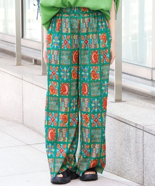 自分好みの丈にカットができる総柄プリントパンツ■デザインチチカカらしいオリジナルプリントが印象的なワイドパンツ。落ち感のあるシルエットで、ゆったりと穿けるのにきれい魅せ。クレープ生地を使用し、縦長ラインですっきり見えるように仕上げました。お好みの丈でハサミでカットオフできるのも嬉しい◎■サイズ感レディースフリーサイズウエストゴムのゆったりサイズがストレスフリーな穿き心地。裾から15cmまでお好みの長さにカットして丈の調整ができます。■素材感プリーツのような細かなシボ感のあるクレープ生地。薄手で落ち感のある柔らかな素材感で、しわを気にせず着用していただけます。■スタイリングシンプルなTシャツに合わせるだけでこなれ感のあるスタイルに。ドルマンスリーブのプルオーバーに合わせて、ゆるっと着こなすのも素敵です。■カラーデザイン1(サラッペ)/デザイン2(メキシコタイル)/デザイン3(ドリームキャッチャー)■お手入れ手洗い/ドライクリーニング---------------------------------透け感:透けない伸縮性:あり裏地 :あり光沢 :なし生地の厚さ:普通ポケット:あり---------------------------------【TITICACAのお買いものをお楽しみいただくために!】▼商品のお気に入り登録完売カラーの再入荷通知や、ラスト1点の通知、セールの通知も受け取ることができます。▼ブランドのお気に入り登録新商品や再入荷など、いち早くブランドのお得な情報を受けることができます!