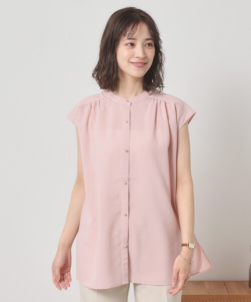 【デザイン】 清涼感ある麻ライク素材のブラウス。 ONからOFFまで幅広く着まわせるベーシックなデザイン。 ベーシックで着まわし易い前開きデザインのブラウス。 カジュアルシーンはもちろん、オフィスシーンにもおすすめのきちんと感あるデザインで幅広く活躍するアイテム。 麻調合繊でさらりとした肌触りの清涼感ある素材です。 ヴィンテージライクなゴールド釦がアクセント。 【素材】 麻調のスラブ感が特徴のポリエステル素材。 (※色によってスラブの見え感が異なります。) さらりとした肌触りと程よいハリ感が特徴です。 ※照明の関係により、実際よりも色味が違って見える場合があります。また、パソコン・スマートフォンなどの環境により、若干製品と画像のカラーが異なる場合もございます。 ---------------------------------------- ★お気に入り登録がおすすめ★ ▽気になる商品はハートマークをクリック! ・再入荷やセールの通知をお知らせ ・お気に入り一覧からいつでもチェック ▽ブランドのお気に入り登録も! ・新商品やお得な情報をいち早くお知らせ ---------------------------------------- モデル情報:身長163cm B78 W57 H84 着用サイズ:00(フリーサイズ) 店舗へのお問い合わせ商品番号:P93-52528 ●製品寸法: 00(フリーサイズ):着丈69cm B100cm 肩幅50cm 備考: