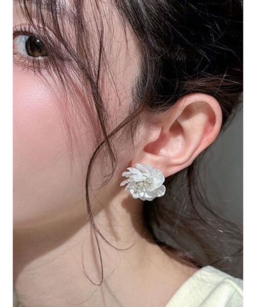 夏らしい素材のフラワーモチーフピアス! 付けるだけで夏らしさUP! 大きすぎず小さすぎない、つけやすいサイズ感なのもポイント◎