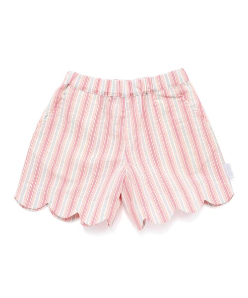 -25SS-カラーごとに柄が違う女の子用ショートパンツ。■デザインオフホワイト系:おねえさんっぽい花柄ピンク系・ブルー系:さわやかなストライプどれにしようか悩んでしまう3色展開です。裾がスカラップになっているのがキュートなポイント。カジュアルになりがちなショートパンツにキュートさをプラスしました。パッと目を引く柄だから、シンプルなトップスとのコーデがオススメ。通園・通学などのデイリー使いから、お出かけまでいっぱい活躍するアイテムです。■素材/機能身生地には接触冷感素材を使用しているから触れたときにひんやりとした心地よさを感じられてキッズもニコニコ。附属品がないのでお手入れしやすいのはうれしいポイント。ウエストはゴム仕様でお着替えラクラク。同じ生地を使用したお揃いアイテムも展開しているので「きょうだい」やお友達とのお揃いコーデやシミラーコーデも◎▼お揃い1815-73687:男の子用切り替えトップス(ホワイト)1810-73583:男の子用ハーフパンツ(ブルー系のみ)※腰ポケットあり。※柄の出方は生地の裁断により一点一点異なります。※接触冷感は第三者機関認証済です。※パンツ丈寸法は、多少の誤差が生じる事がございます。あらかじめご了承下さい。25春夏アイテム【2025年 5-6月のテーマ / &playful】知育モチーフやカラフルな柄、キラキラ...子ども心をくすぐる素材感。暑い夏でも元気いっぱい!思いっきり遊んでもずっと快適に!【2025 SPRING / SUMMER &delightful-楽しい、うれしい、愉快で、快適-】人の感覚に心地いいものや心がはずむもの・・・今らしさを取り入れて快適にファッション楽しめるように永く愛せる商品を展開します。【SLAP SLIP(スラップ スリップ)】~子どもの欲しいをカタチに~ヨーロッパのこどものように子どもらしい今しか着れないナチュラルなかわいさを提案どこか上品で清楚感漂うフレンチカジュアルはいつものコーディネートをさりげなく格上げ