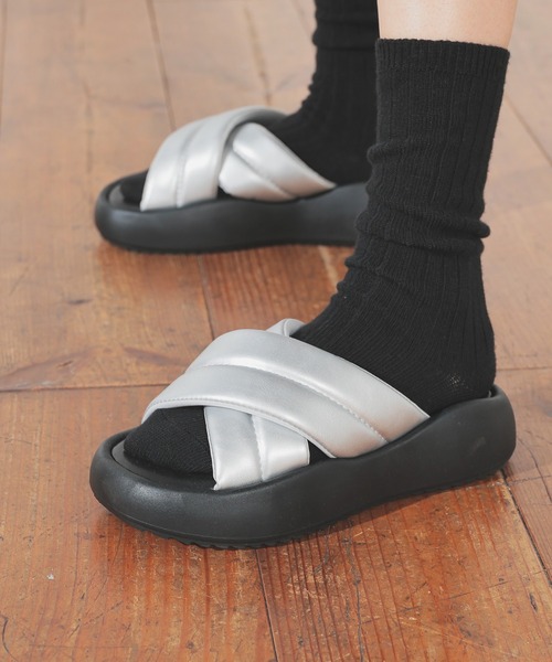 旬のボリュームアッパー 【デザイン】 ふっくらとしたフォルムが特徴のクロスベルトデザイン。 フラットで安定感があり歩きやすい。 ボリューミーなシャークソールもポイント。 【素材・機能】 高見えするフェイクレザー素材。 【スタイル】 シンプルで合わせやすく、1点プラスするだけでカジュアルコーデをアップデート。 普段使いからリゾートまで幅広いシーンで活躍。 ※湿度・摩擦により多少色落ちする可能性があります。 品番:280-134-9112