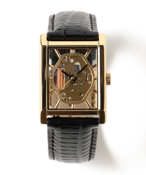 スケルトン仕様で漂う気品■デザイン上品でクラシックな雰囲気をまとうスクエア型のケースは、光沢感のある磨き仕上げと、落ち着いたツヤを持つヘアライン加工の両方を施すことで、絶妙なコントラストを演出。エッジの効いた直線的なラインに、側面のなめらかなカーブを組み合わせた、洗練されたケースデザインが魅力です。ベルトには、リザード調の型押しタイプを採用し、モダンでありながら上品さを漂わせる仕上がりです。■ディテール文字盤の表も裏も透明に仕上げたスケルトン仕様により、時計の内部が360度楽しめる遊び心のあるデザインに。ムーブメントは、細やかなカット加工を施したパーツで丁寧に固定されており、まるで空中に浮かんでいるかのような立体感を感じさせる構造が特徴です。【仕様・詳細】・ムーヴメント:クォーツ(日本製)MIYOTA 2035・ケース素材:ステンレススチール・ケース幅:26.0mm・ケース厚:8.2mm・ベルト幅:20mm・風防素材:ミネラルクリスタル・防水:3気圧防水※商品お届けの際の納品書は、お買上日を証明する書類として保証書と共に大切に保管して下さい。※製造時に内蔵されている電池はモニター用電池です。※ご購入から1年以内の電池切れは保証書がある場合、弊社負担で無償交換可能です。修理期間・料金は状況により異なりますので、その都度お問い合わせください。【お気に入り機能を使ってお得な情報をGET!】●商品のお気に入り登録(ハートマークをクリック) ・残り1点、再入荷、お得なセールやクーポンなどの通知を受け取れます。・お気に入りした商品は一覧で閲覧でき、あとで見返すのに便利です。●ショップ・ブランドのお気に入り登録・新商品や再入荷、クーポン配布などいち早くブランドのお得な情報を受け取ることができます。