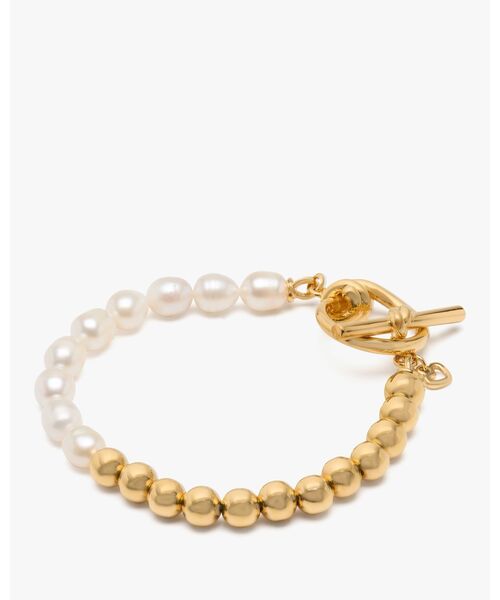 スタイリングをまとめる、仕上げ役として手元に添えたいタイムレスなトグル ブレスレット。艶めく淡水パールとメタルパーツを合わせたコントラストが視線を捉えます。【商品詳細】・重さ:23.12g・留め具:トグルリング & バー